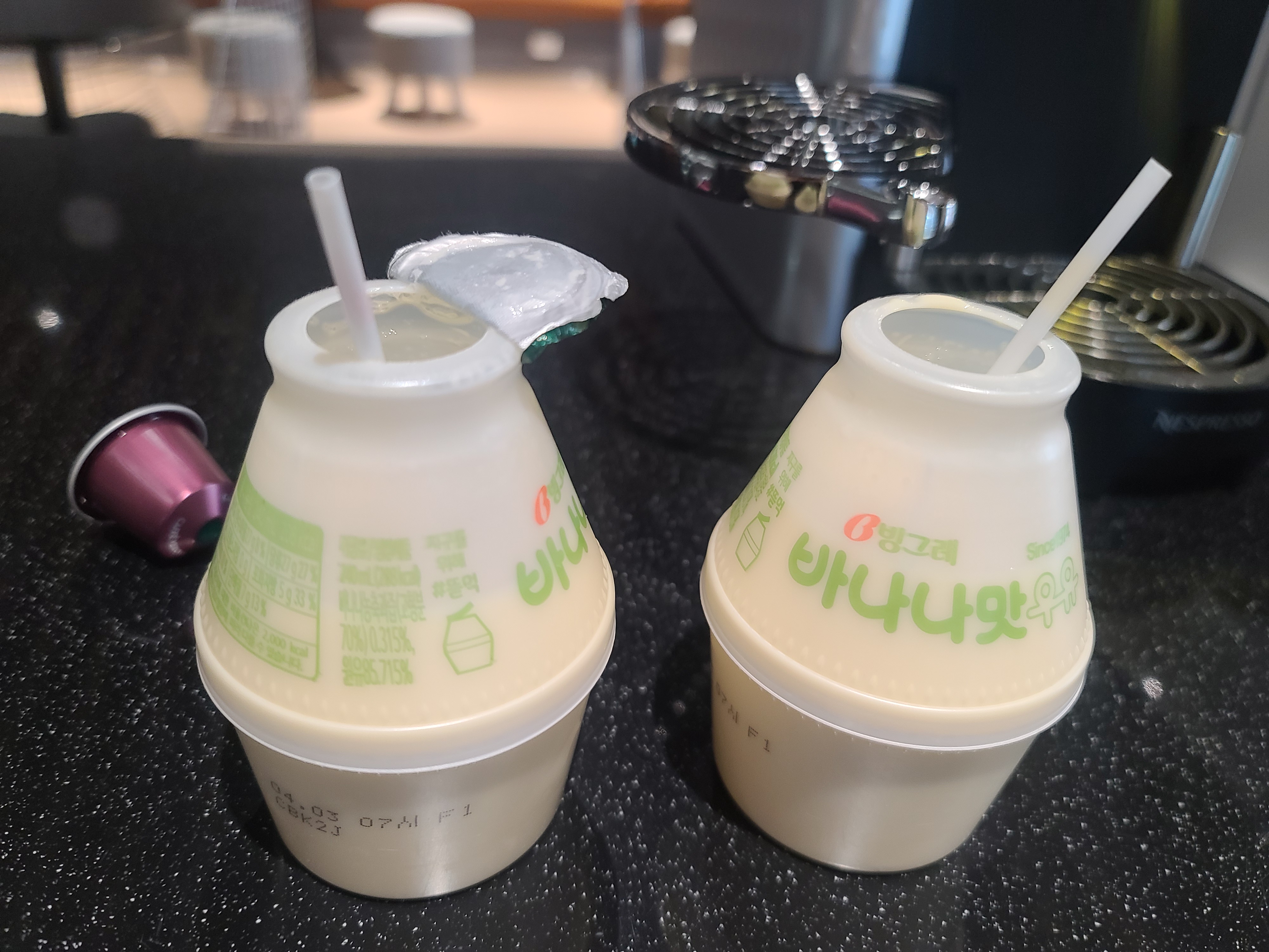 바나나우유라떼 완성! >_