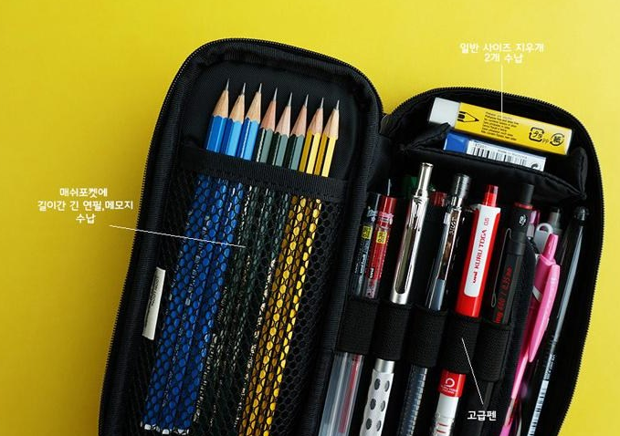 런런 필통의 가장 큰 특징은 칸막이가 분리된 구조입니다. 이를 통해 연필, 지우개, 볼펜, 크레용 등 다양한 필기구를 깔끔하게 정리할 수 있습니다. 초등학생들은 필통을 열어서 찾는 시간을 절약할 수 있겠죠?