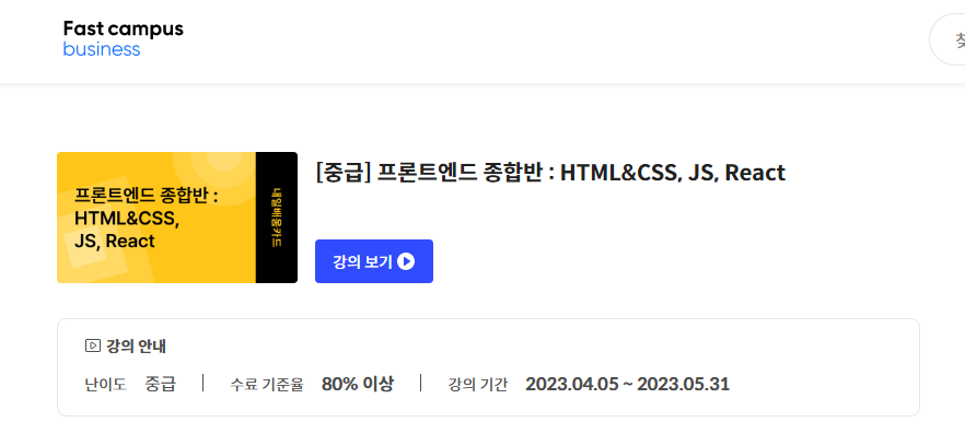 정부에서 지원하는 출판사 교육만으로는 당장 출판사에 취직하기 어렵다는 생각이 들었습니다. 퍼블리셔를 모집하면서 프런트엔드 스킬을 요구하는 기업과 발표가 많았기 때문이다. 그래서 눈높이를 정면으로 올려보기로 했습니다. 웹디자이너 급하게 취직을 해서 출근하면서 들을 수 있는 기초 프론트엔드 강의를 찾아봤는데 그 중에서 패스트캠퍼의 프론트엔드 종합반이 가장 적당한 것 같아서 즉시 적용됩니다.